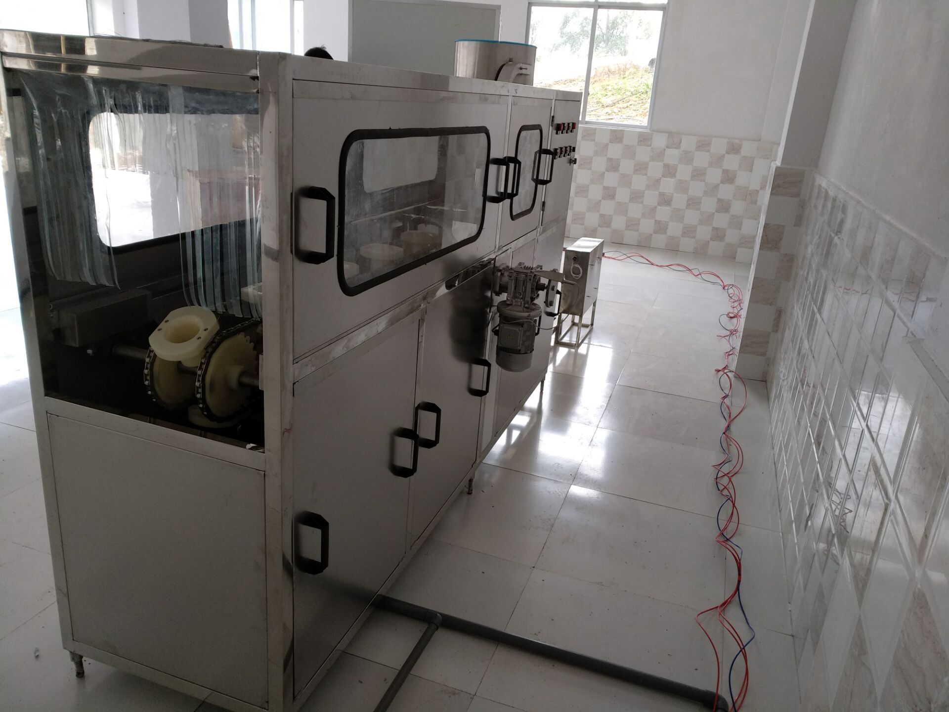 瓶子(或桶)通过传送带或风送道传递至灌装区域。