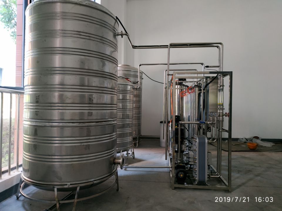 工艺流程:原水→原水箱→原水泵→机械过滤器→活性炭过滤器→阻垢/软化装置→保安过滤器→高压泵→反渗透→纯水箱→输送泵→混床/EDI→紫外除TOC→超纯化→紫外杀菌→终端过滤→用水点→循环回纯水箱